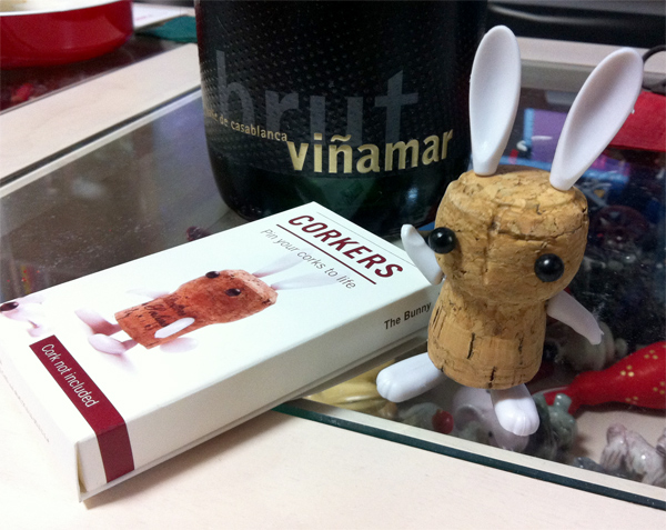 シャンパン、いやさスパークリングワイン(食品偽装的に)のコルクに、顔と手足をつけるおもちゃをワイン屋さんで買ったのですが、ずっとその手のものを飲んでなかったんですが、とうとうクリスマス付近になって飲みまして、作りました!