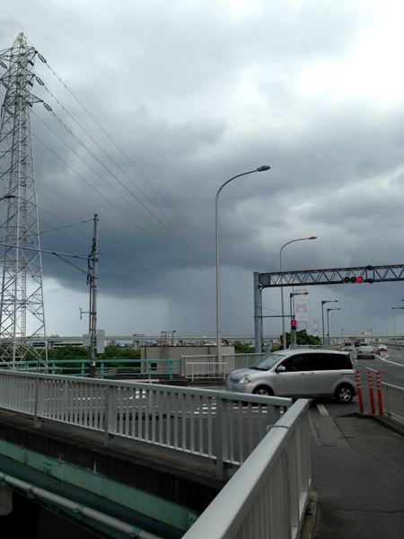 難所の橋のところまで来て、絶望。正面にゲリラ雷雨がばりっばり降ってるのが見えるー!!