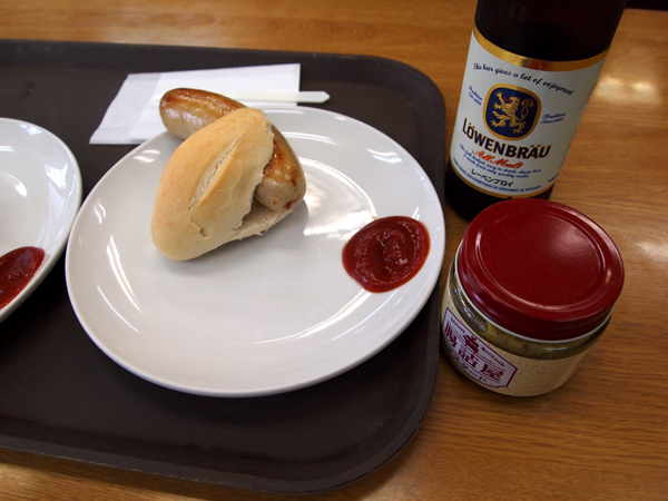 イートイン的に食べられるソーセージと、レーベンブロイっていうドイツビール!
