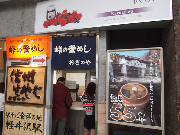 駅にある峠の釜めしの屋台が〜!美味しそうだよう、食べたいよう。でも新幹線内でも腹ごしらえした上にこれから軽井沢で何か食べるかもしれないわけだからなぁ…