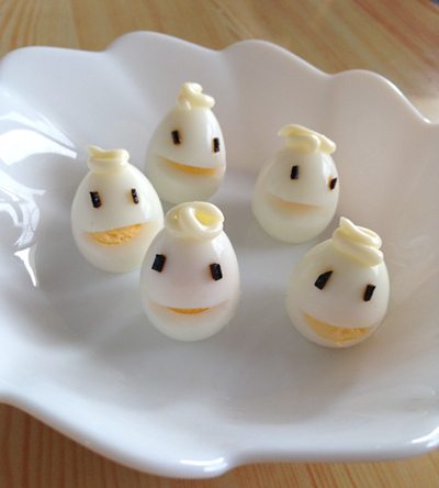 先日、実家で甥っ子ちゃん(2歳)と食事作ってあげたりすることがあったので、喜んでくれるかなーと思ってうずらの卵をゆでて顔つけてみたんですけども。