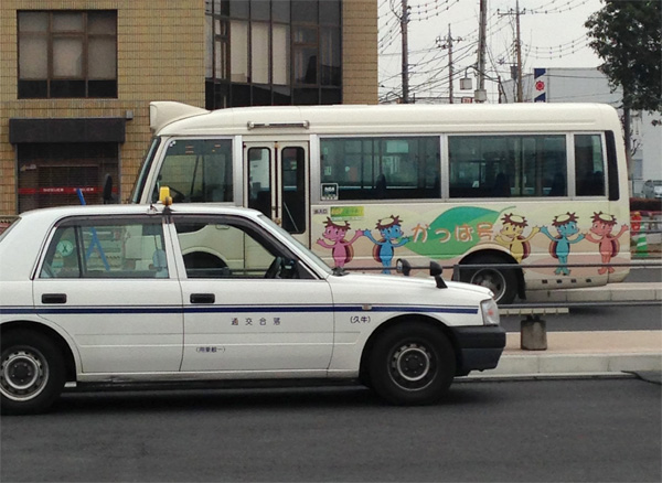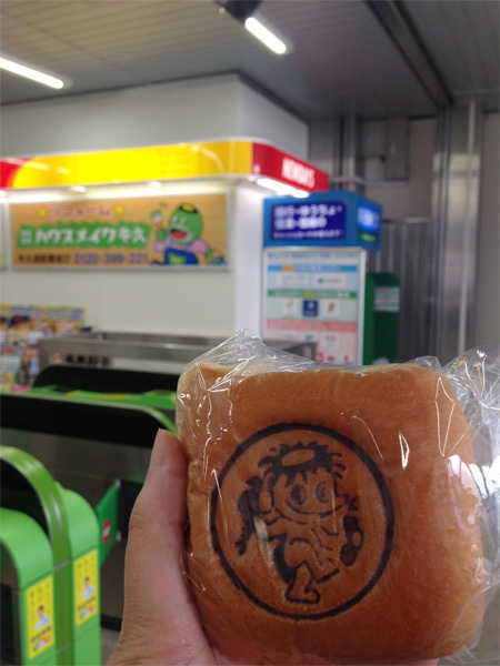 駅前のパン屋さんで打ってるあんぱんにも河童。改札の横のリフォーム屋さん?の看板も河童。
