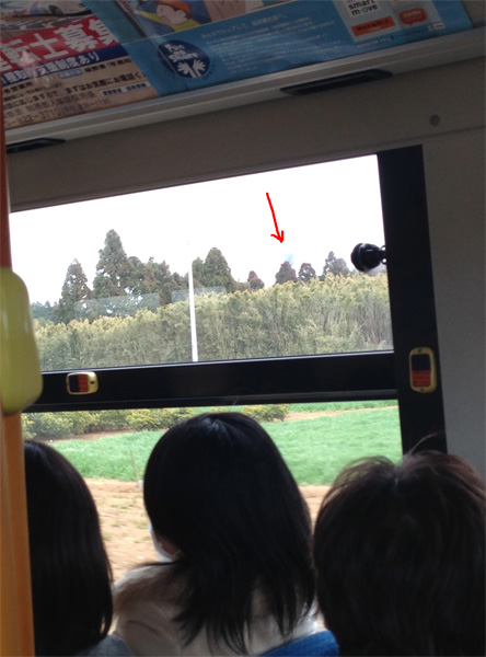 あっ見えた!と車内がザワつく。矢印のところなんですけど見えますかね。