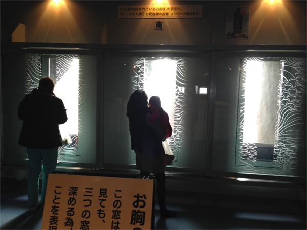 次は一気に最上階へ。この3つの窓、さっきの大仏の胸元の3本線です。