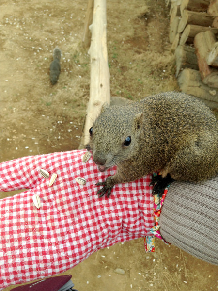 リスも放し飼い!腕にまで乗ってきてひまわりのタネ食べるんですよ、もはや野生は残ってないね!!かわい〜〜。