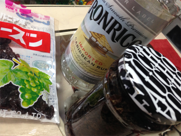 ホーローバットのお菓子作りの本に、結構ラムレーズンを使ったお菓子が載っていたので、ラムレーズンを仕込んでみました。