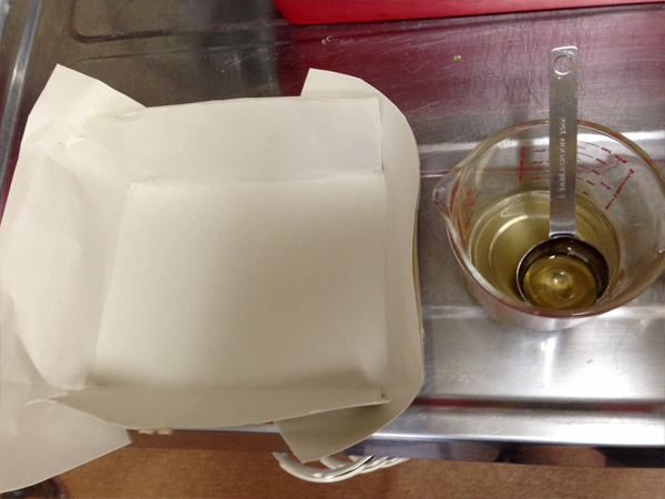 蜂蜜を熱湯で溶いたものを用意しておいて、次にバットの上にわら半紙を敷きます。
