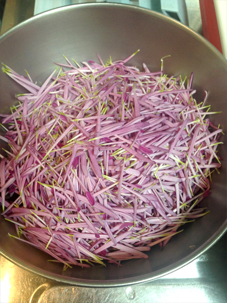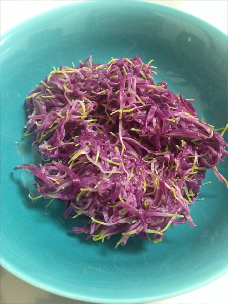 さっと茹でてざるにあげて、しぼってお皿へ…
