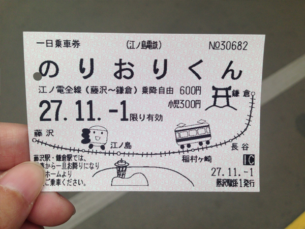 今回はもしかして時間があれば江の電の駅をうろちょろしようと思って、何度でも乗り降りできる「のりおりくん」を購入。普通に途中下車一回するだけでも、600円ならアミューズメント代としてそんなに痛くないんではないか。