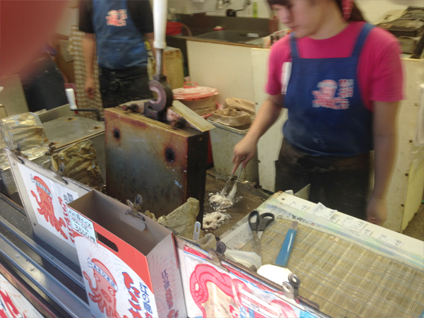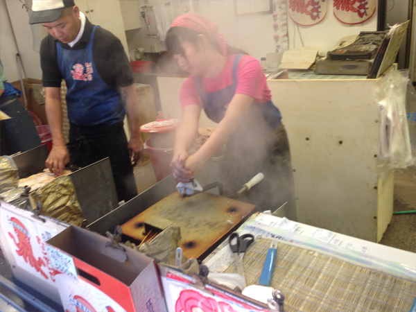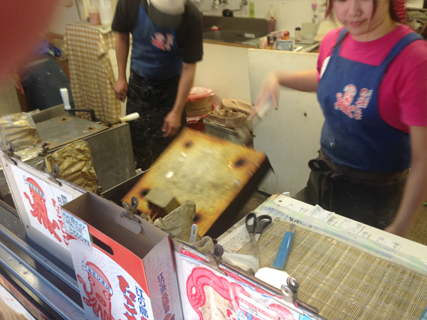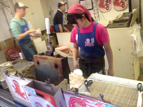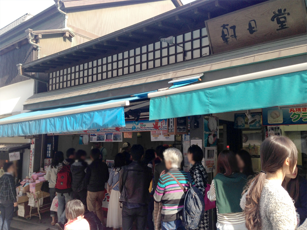 有名なたこせんべいのお店、朝日堂本店へ。大行列ー!