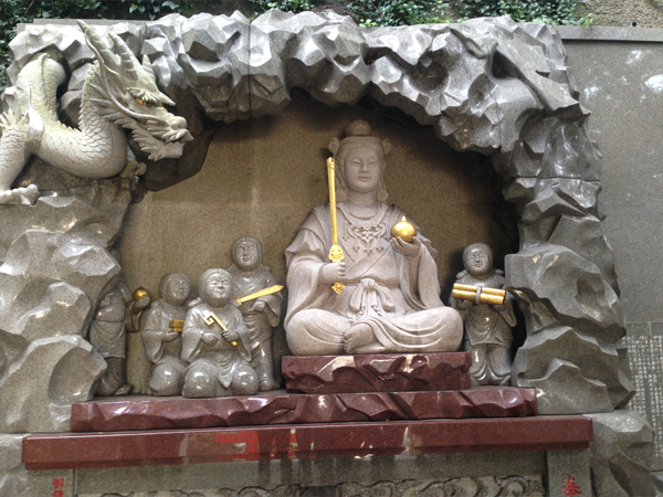 江島神社へのいりぐちをくぐるとこんな石像とかがいます。結構新しかった。