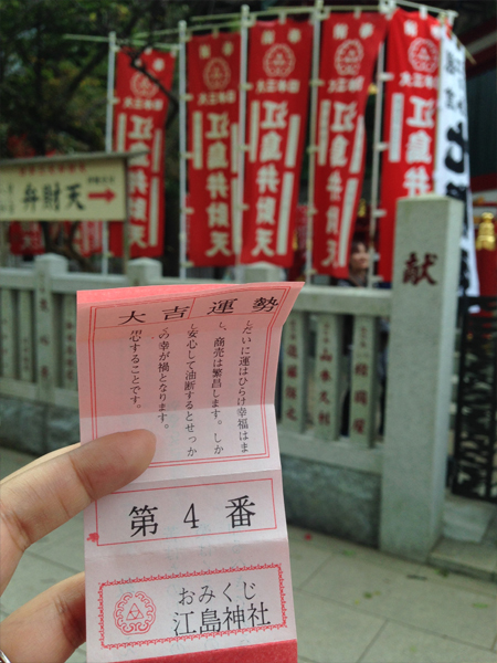 おみくじを引いてみました。4番だけど大吉!いやったぁ!