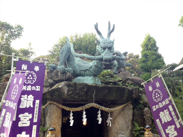 あっ!のぼりにトライフォースが!!ここは龍宮(わだつみのみや)というお宮みたいなんですが、なになに説明書きによると…?(意訳)