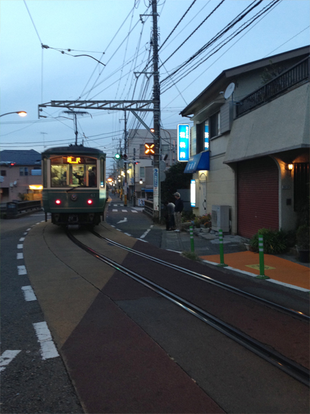 あ、ちなみに、江ノ島-腰越間だけ、江の電は路面電車みたいになっています。素敵!