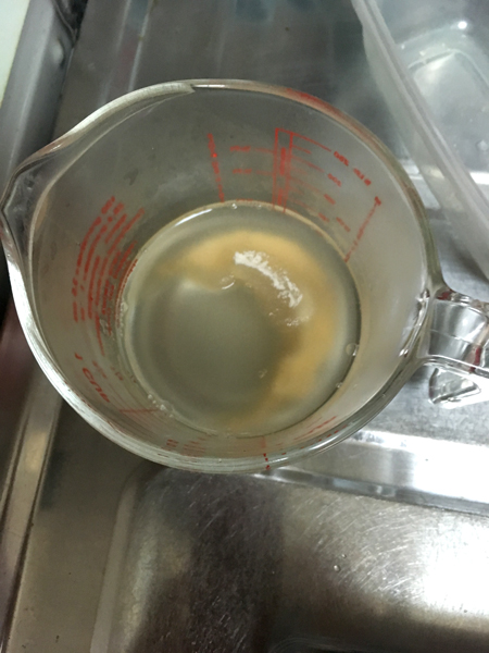 3センチ大の寒天の粒はさすがにまずいと思って、電子レンジでチンして液状にしてから投入しました、こんな方法でいいのか…??