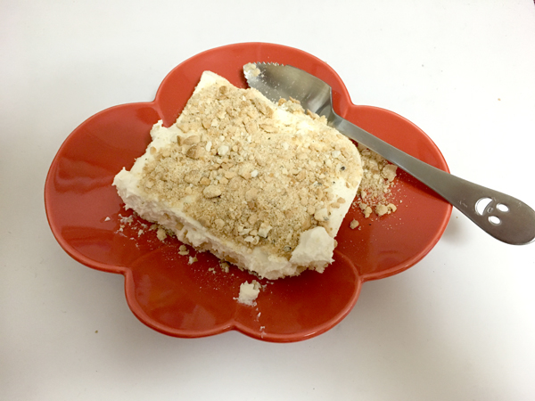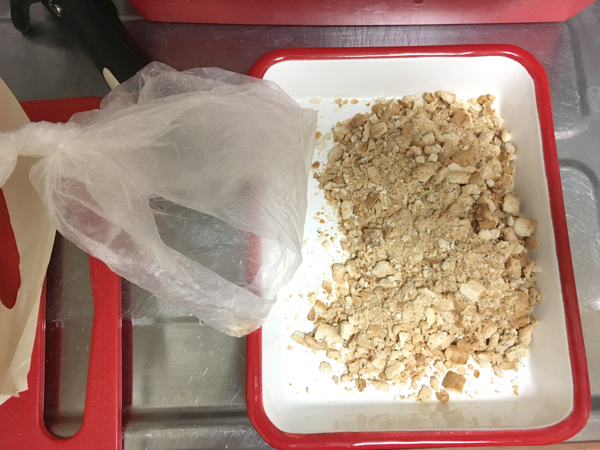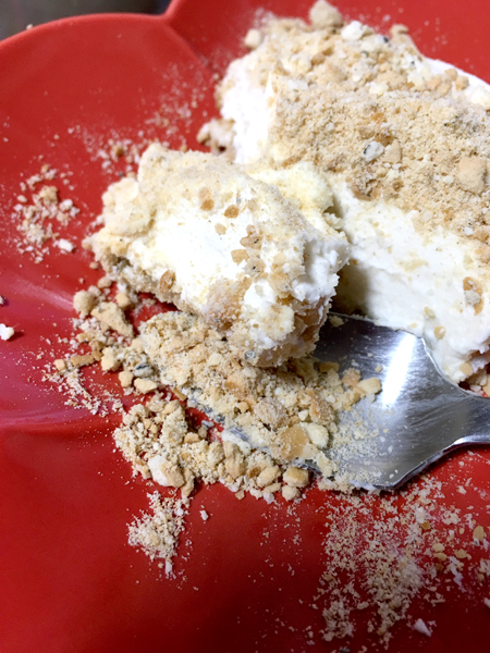しょうがないのできな粉状の乾パンはチーズケーキの上にかけました。