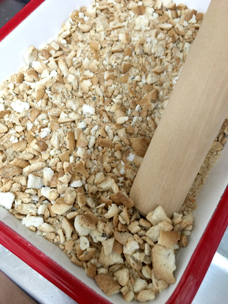 しかしこんなの、こなこなのまんまでチーズケーキの台になるのかい…?