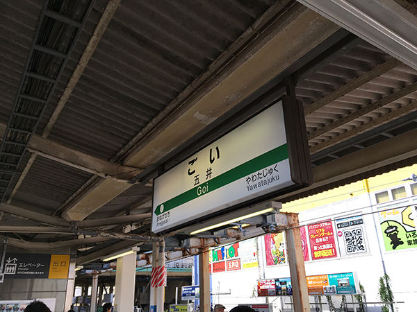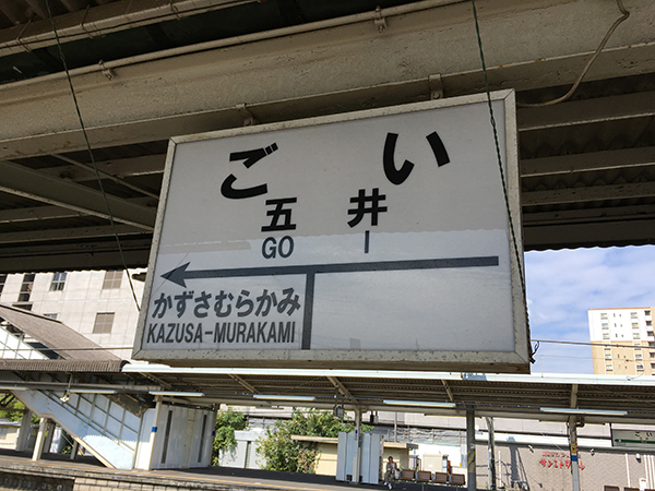 まずは、JR内房線でチーバくんの鎖骨の凹み当りにある五井駅に向かいます。