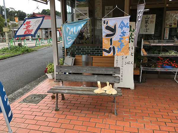 駅前の軽食屋さんのベンチに…何かいる。