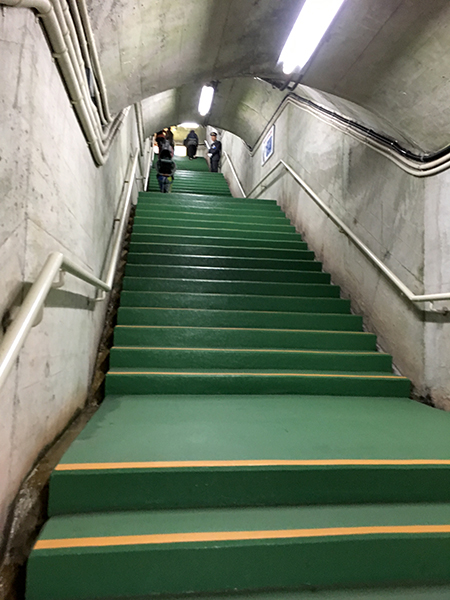 階段上ってると、中腹に駅員さんが立ってて、皆さん無理せず上ってくださーいとか言ってました。あなたも毎日ここにご出勤なんですよね…多少慣れるのかなあ。