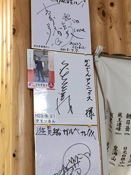 遊覧船のチケットとかを売ってるところの売店で、タモさんのサインを発見。