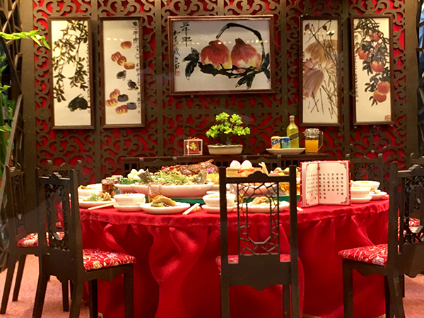 豚の丸焼き、エビのすり身で包んだカニ爪揚げ、鶏とフカヒレのスープ、魚の浮き袋とガチョウの水かきの煮込みなんかがテーブルにぎゅうぎゅうに乗っててうまそー!!