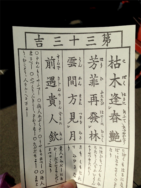 おみくじは吉。だいたい全部よし、って感じで書いてたので幸先よし。