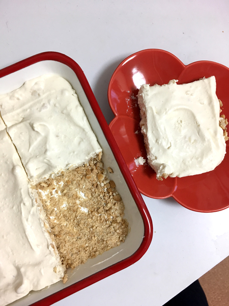 しょうがないのできな粉状の乾パンはチーズケーキの上にかけました。